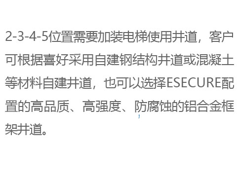 ESECURE提供多種位置易于安裝的電梯,為此我們研發(fā)了專屬的井道部件及安裝方式,為空間而生。